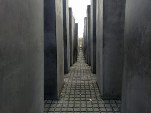 Seuraavaksi kävelimme holokaustin muistomerkille. Paikka on todella koskettava ja puhutteleva harmaine erikokoisine kivipaaseineen ja kapeine käytävineen.