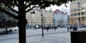 Hotellin monipuolisen aamiaisen jälkeen istuimme hetkiseksi suunnittelemaan tulevia päiviä eli varasimme majoitukset Salzburgiin ja aiemmin suunnitellun Veronan tilalta Gardajärven rannalle. Lisäksi ostettiin paikkaliput (noin 5€/paikka) matkoille noihin paikkoihin, vaikka ne eivät ole pakollisia, mutta onpahan sitten varmasti istumapaikat. Paikkoja on helppo ostaa rautatieyhtiöiden sivuilta.  Lisäksi suunnittelimme huomenna käydä  Ceske Budejovicessa, koska Prahassa näyttää satavan iltapäivällä ja tuolla B:ssä on aurinkoista. Sinne on noin kahden tunnin junamatka. Suunnitelmat tehtyämme astuimme ulos aurinkoisen Prahan kaduille.
