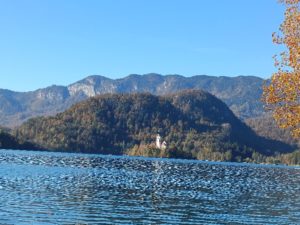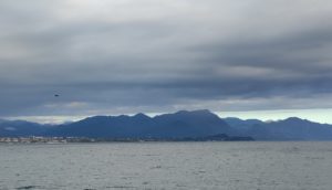 Viimeiseksi menimme vielä johonkin saareen, jonka nimi jäi meille epäselväksi. Viivymme sielläkin vajaan tunnin. Kävelimme rantakatua ja panimme merkille, että lähes kaikki liikkeet ja ravintolat oli laitettu talviteloille. Ihmettelimme, miten saarella olevat isot puut olivat taipuneet mantereen suuntaan, liekö tuuli taivuttanut ajan mittaan. Satamassa oli kaksi isoa huvijahtia parkissa.