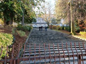 Tänä aamuna aamiaisen jälkeen kävin kävelemässä linnan ja sen ympäristön kaduilla Paulan lepuutellessa jalkaansa hotellihuoneessa. Linnan takana mereltä katsottuna on korkea Grgur Ninskin patsas. Hän oli 900-luvulla vaikuttanut piispa, joka ajoi voimakkaasti kroatiankielen käyttämistä kirkon toimituksissa ja saikin muutoksen aikaan. Patsas pystytettiin 1000 vuotta myöhemmin, v. 1929. Uskotaan, että patsaan varpaan hankaaminen tuottaa onnea ja siksipä varvas on sileä ja kiiltävä. Patsaan takana on pieni kiva puisto.